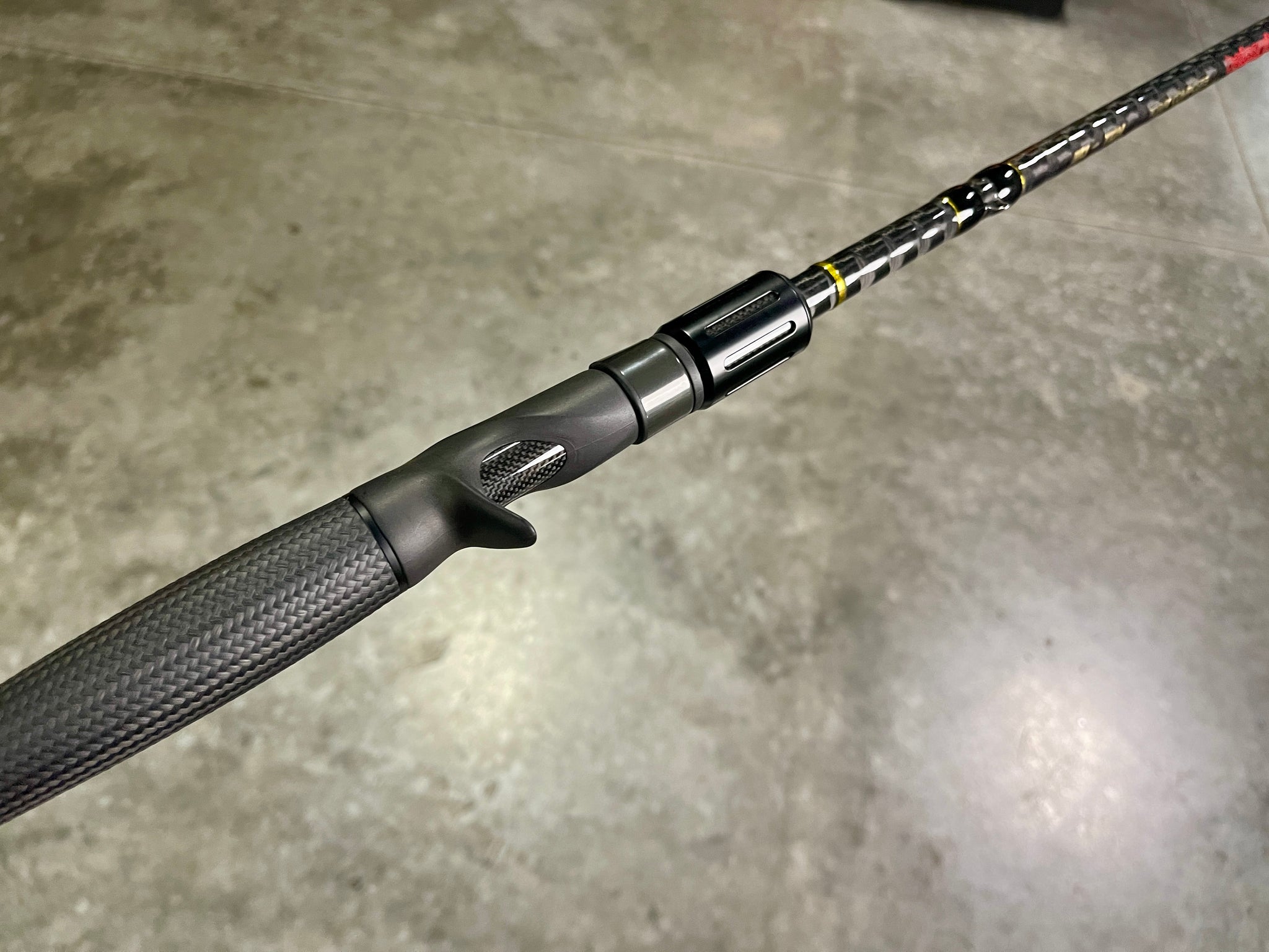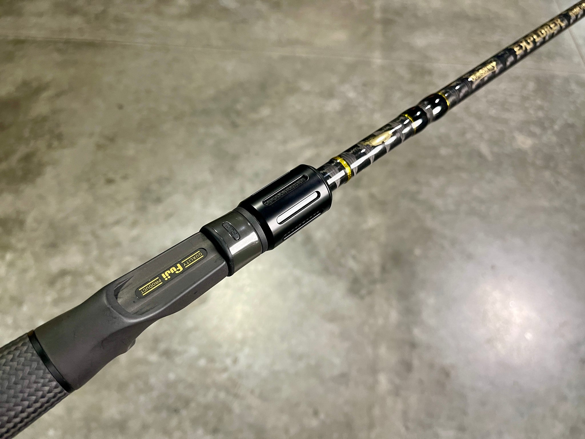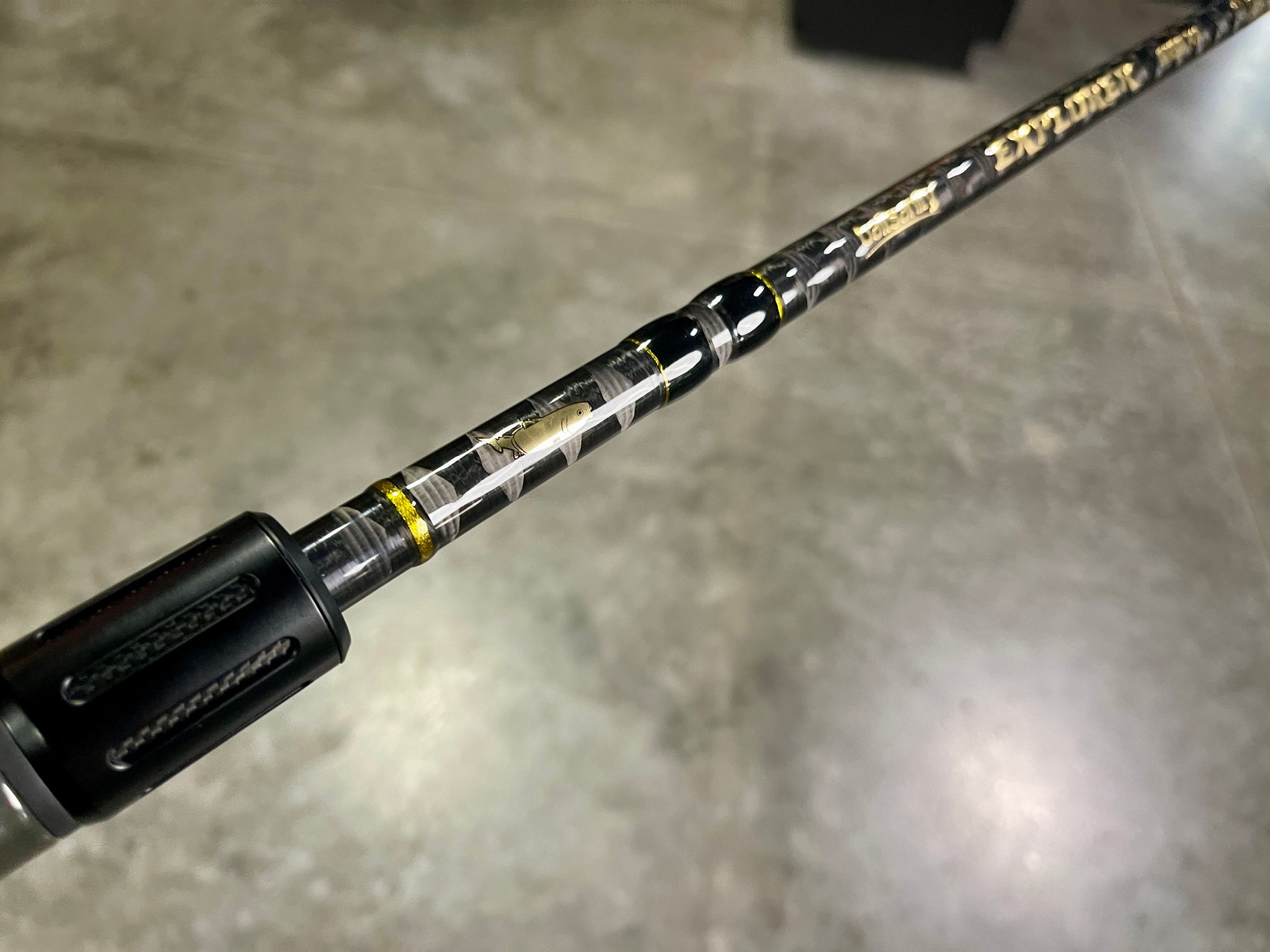 Built with custom, high end components and designed for all around glide bait performance, the new Baitsanity Explorer Glide Bait Rod is a perfect choice for demanding anglers needing one rod to conquer many baits! A custom built 30-ton Japanese Toray Blank is strong and parabolic, and it's wrapped in cross weave carbon tape to provide excellent durability. A full custom built CFX soft carbon grip is soft to the touch and compliments the custom aluminum and carbon fiber reel seat lock down. Fuji reel seat and guides.