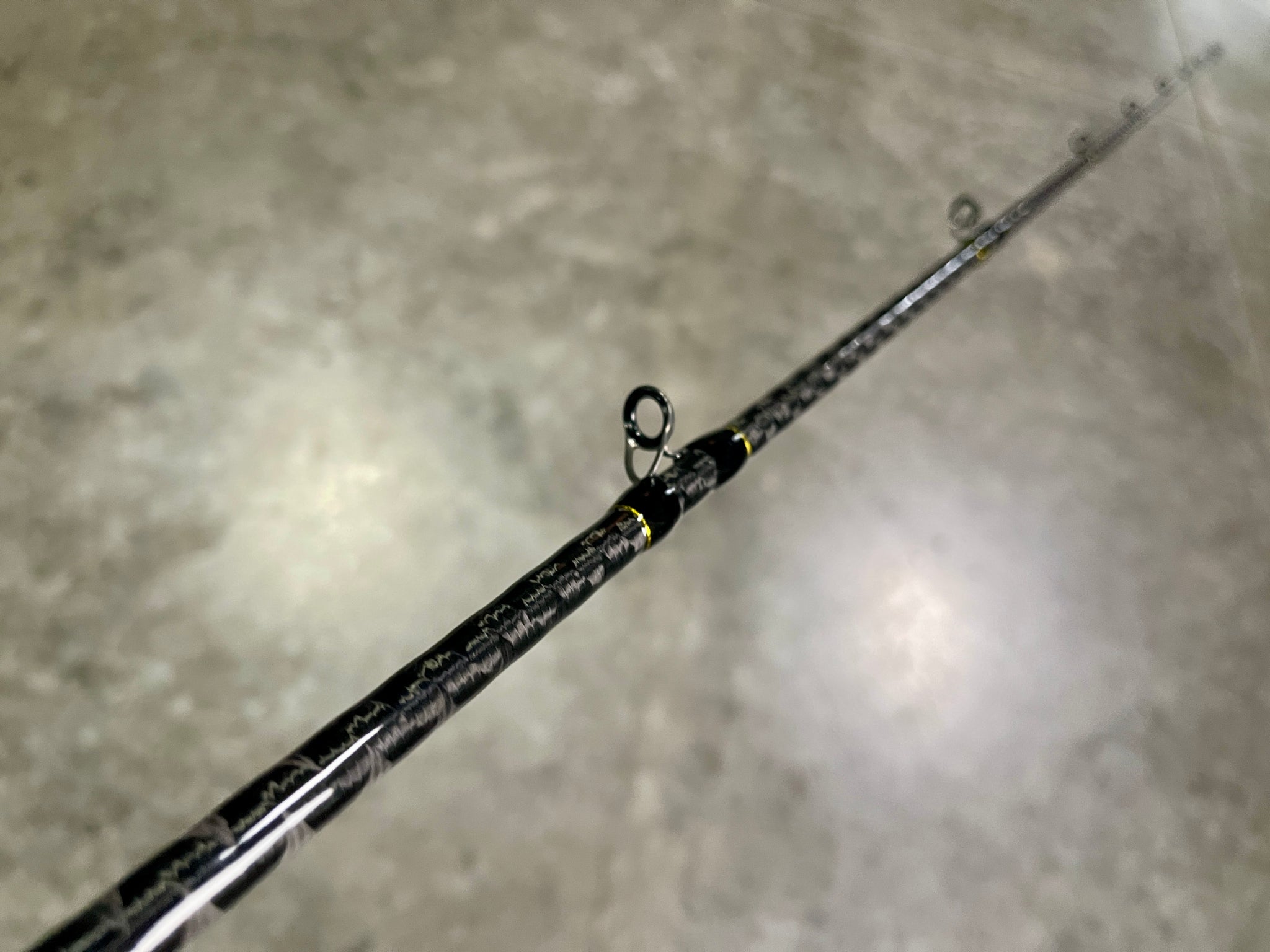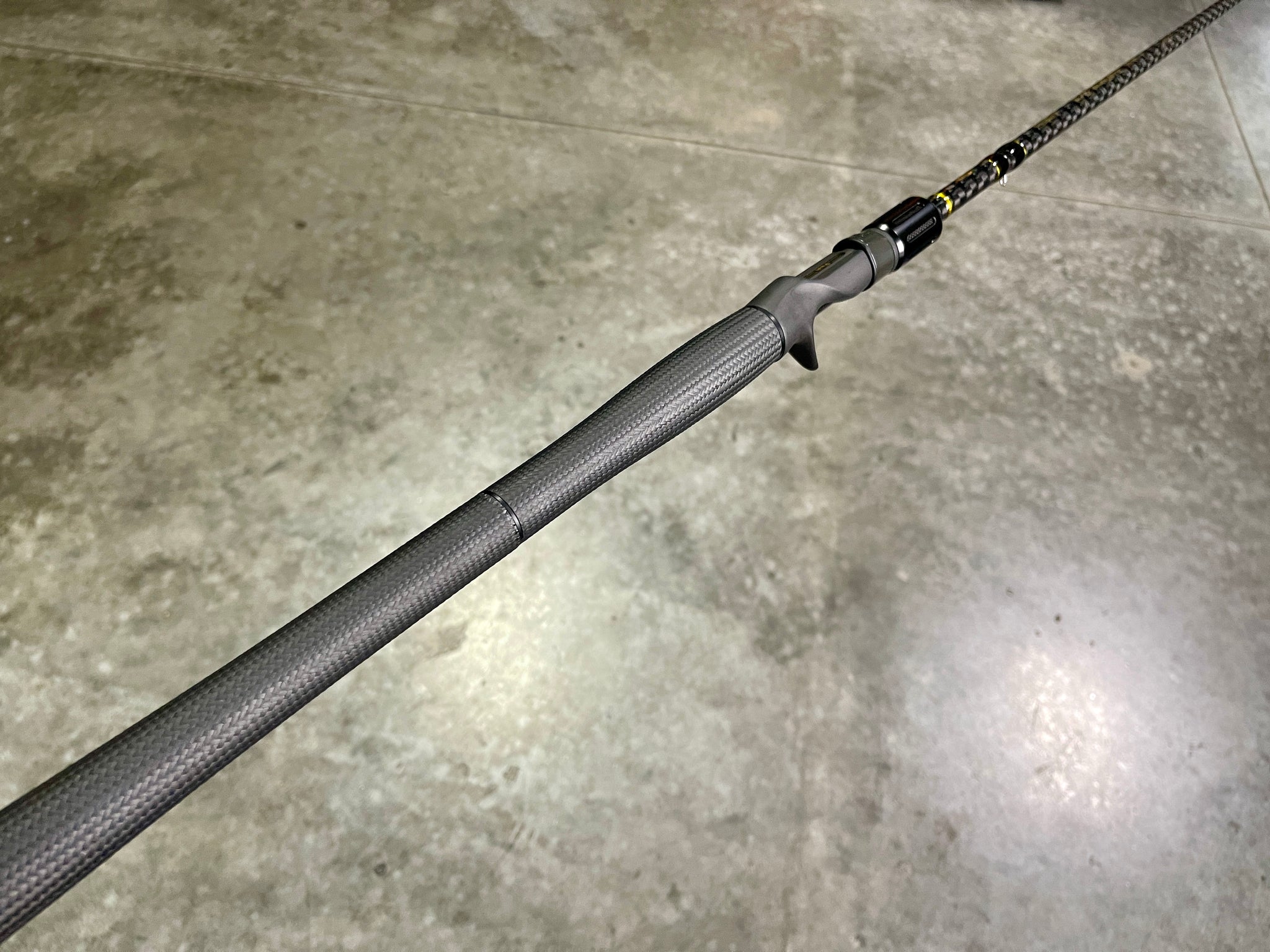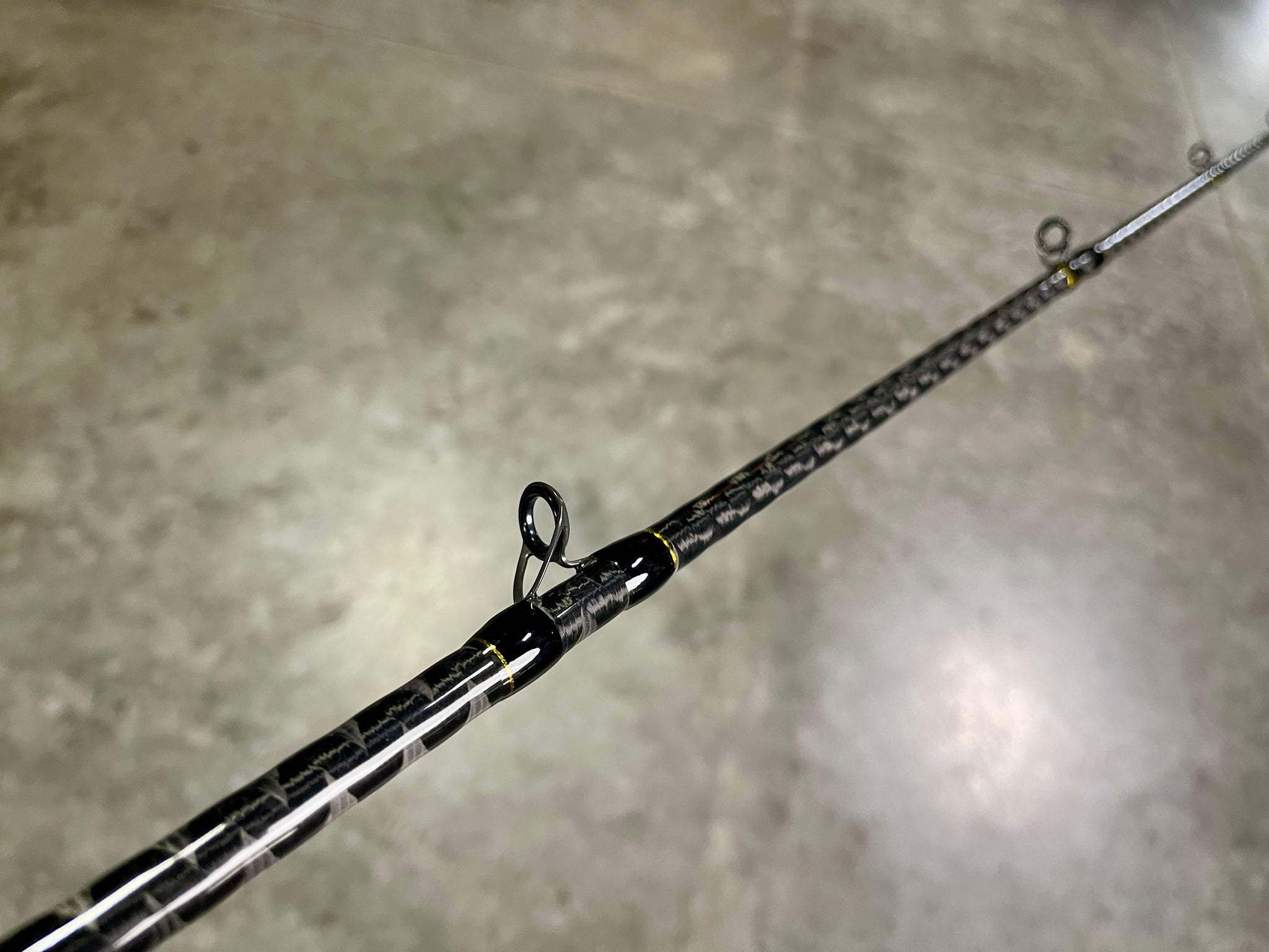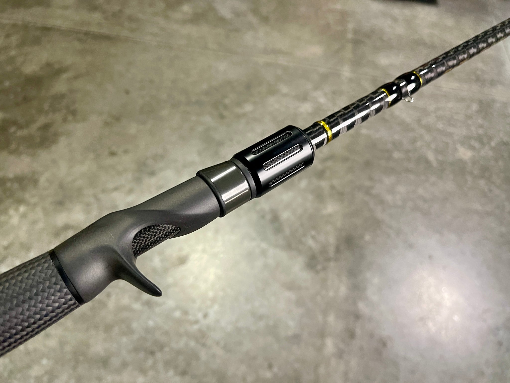 Built with custom, high end components and designed for all around glide bait performance, the new Baitsanity Explorer Glide Bait Rod is a perfect choice for demanding anglers needing one rod to conquer many baits! A custom built 30-ton Japanese Toray Blank is strong and parabolic, and it's wrapped in cross weave carbon tape to provide excellent durability. A full custom built CFX soft carbon grip is soft to the touch and compliments the custom aluminum and carbon fiber reel seat lock down. Fuji reel seat and guides.