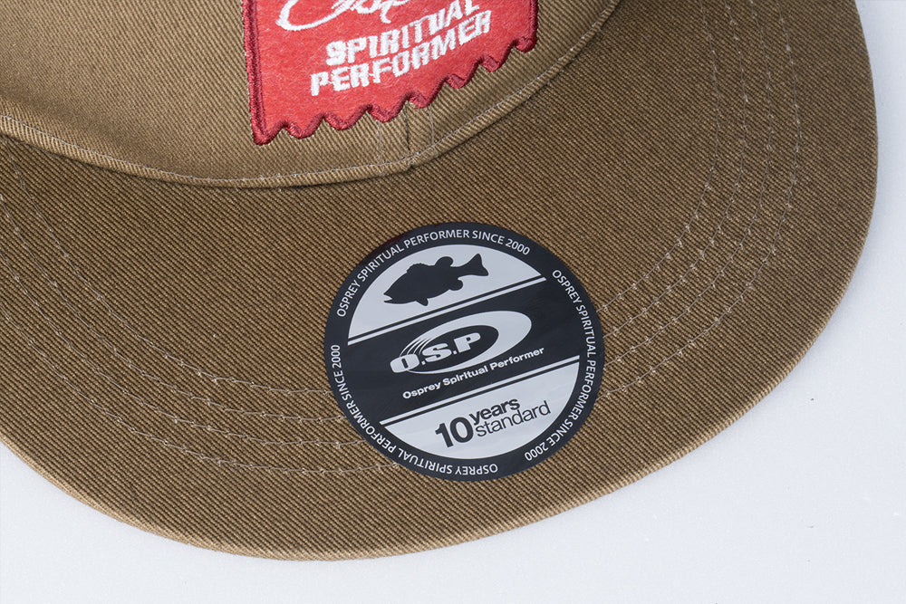 The front is embroidered with the words "Osprey Spiritual Performer" on a red felt fabric. The back has an O.S.P logo patch, and the left side is embroidered with "Bajin Crank". In addition, the original seal is printed on the bram, and the O.S.P logo is also printed on the tape inside the body, and the O.S.P specification is included in various places. The back of the suba is made of black fabric with O.S.P's attention. Black fabric is used to suppress the stray reflection of light. The size can also be adjusted with the snapback on the back. With a calm color lineup based on earth color, it is a flat cap that is easy to match with various coordination in the field, whether casual or town use.