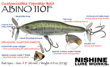 The best lure release at I-Cast 2021 has arrived! The Nishine Abino 110F is a fully customizable topwater bait with over 6 years of R&D. Each prop blade can be removed or flipped around for different action. The belly weight can be used as is for a loud knocking sound or changed out for a tighter action and less knock. Adding the Nishine weight in place of the blade allows the bait to wake or slow sink. Basically, whatever you can think of, the Abino can do!