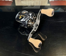 A collection of Daiwa reels that are customized with SLP components. Spinning reels feature an SLP shallow spool, SLP carbon fiber or barstock aluminum custom handle and SLP grip with added bearings. Baitcasting reels feature SLP custom carbon fiber handles and either cork or Zion SLP knobs and bearings.