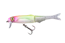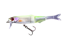 Fusion of hard body and soft body. Ultra-small joint minnow pursuing natural. Another ambitious work by TSUTOMU KAWASHIMA, with the nickname of super loco of the Boso Peninsula. The lure is inspired by small smelt and Oikawa which bass loves to eat, and its action and the usability is sharpened . It is a small joint minnow that incorporates the necessary elements and functions for serious fishing without relying solely on the size of the actual fishing performance. The bending lip that extends in the vertical direction conveys torqueful power to the end of the tail, and at steady reeling, wobbling roll action is a twitch that makes fine action by rod operation. Then, by moving firmly in a narrow range of movement, it will appeal to bass. The body is made of a hard body of ABS-plastics and an elastomer material with excellent strength and flexibility, which makes it difficult to be cut off at rest with glossy action.