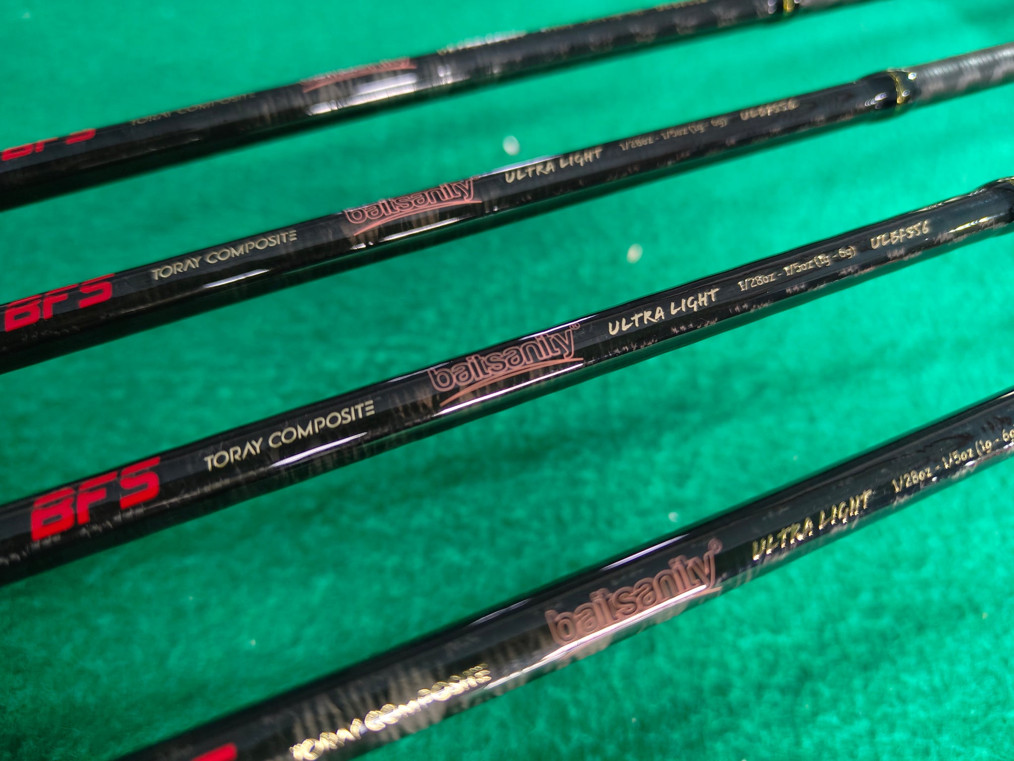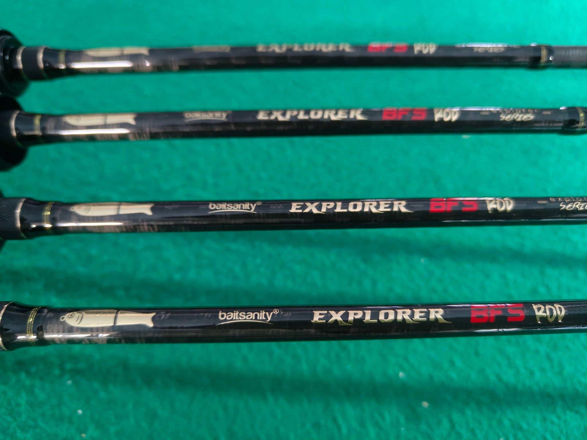 A one of a kind build built for Baitfinesse Glide Baits. Built from a Japanese Toray Composite Blank, the BFS Explorer Gilde rod is rated for 1g-6g, is 5'6", and had a custom full carbon fiber grip and reel seat. This is a great hard bait rod as well as a soft bait rod, as it's built with a light tip but faster than traditional BFS hard bait rods.