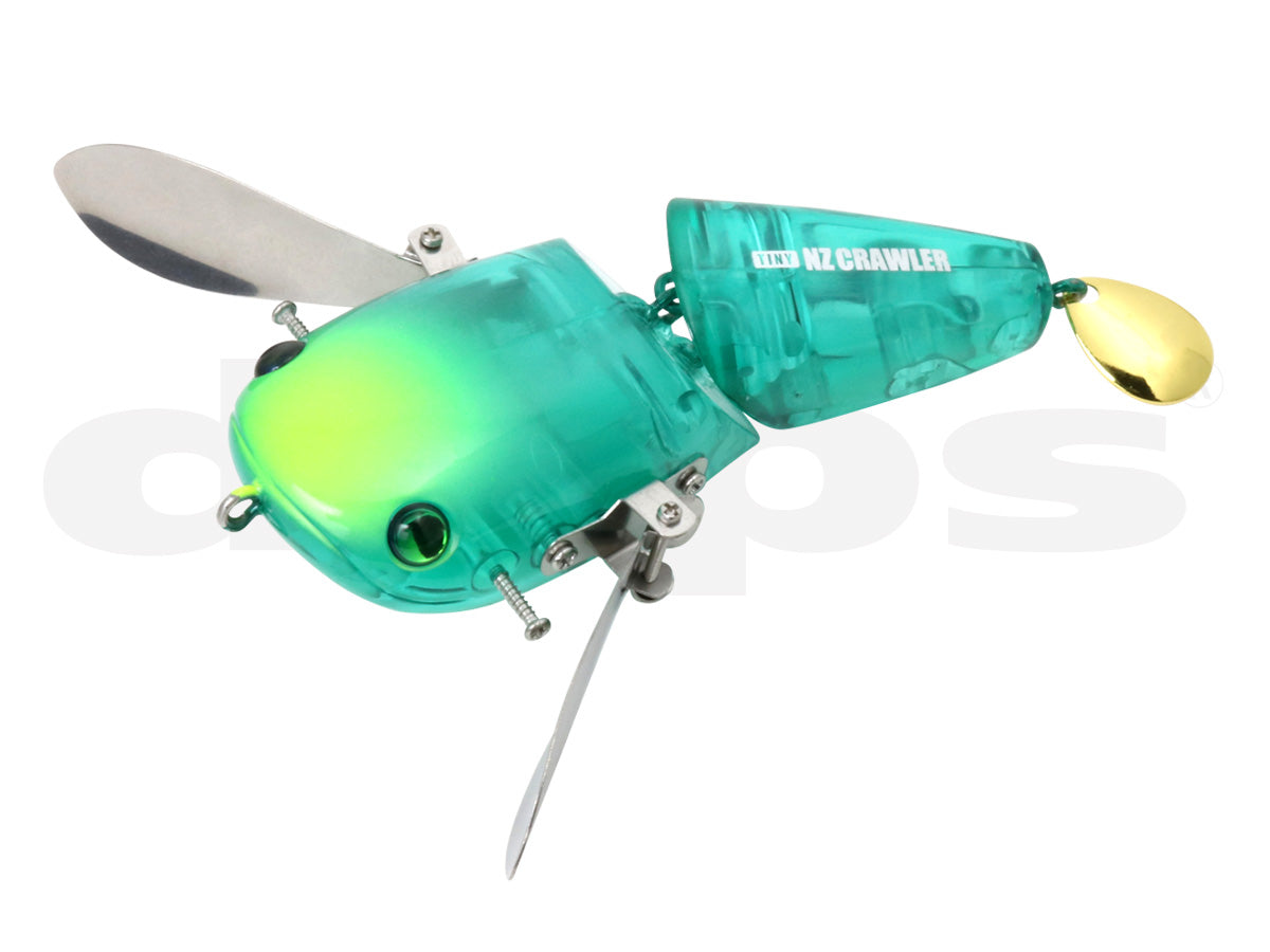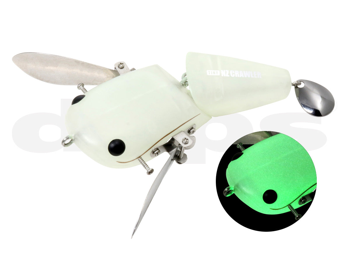 Dep's hot topwater- the NZ Crawler now comes in a Junior! Its flat shape has a wide volume to move more water as it walks with stainless steel wings on both sides that produce a loud clack and strong wave and it swims that works well at any retrieval speed just as well as its big brother but at a much more manageable size and weight. A jointed tail helps the lure balance and move smoothly through the water while the tail blade adds a bit more vibration and flash.